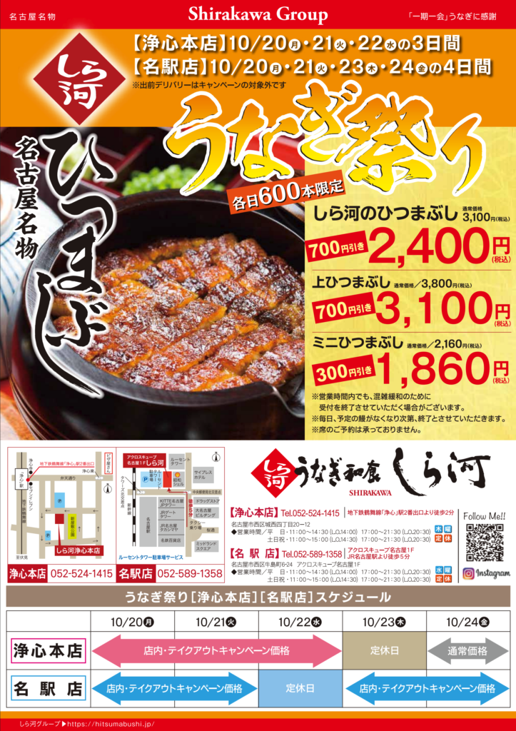 うなぎ祭り開催のご案内(浄心本店 名駅店 2店舗合同企画)